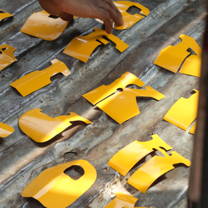Fast-forward to 2022. I had been running a design studio, Dá, for several years. I always thought of refining the first version of Danfo, but I never quite got to it. I eventually took a stand and brought my team members on the project. I asked Johnson and Seun to visit the bus parks closest to their homes, take pictures, speak to the drivers, and find the lettering artists who make these stickers [Fig 3-11]. One fascinating realisation is that every set is different, even when cut by the same artist. After taking dozens of images, we realised two broad classifications: the complex cuts we call “rugged”, usually adorned with extra cuts and embellished with ornaments and the more straightforward, less detailed cuts that we describe as "simpu".